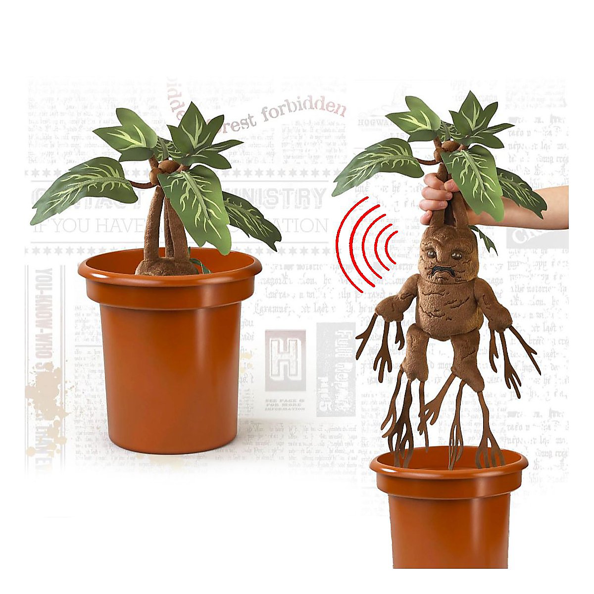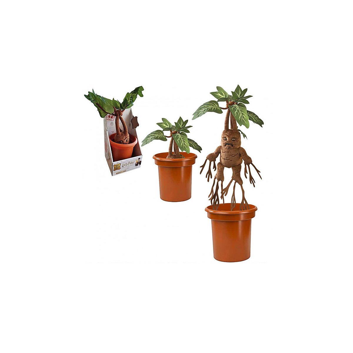 As freshly harvested in Professor Pomona Sprout's herbology classes: This quirky mandrake made of plush comes in its own typical pot. But beware: She is not very fond of being pulled out of it, and starts fidgeting like in a movie and making unpleasant noises. A funny trick for witches and wizards of all ages.