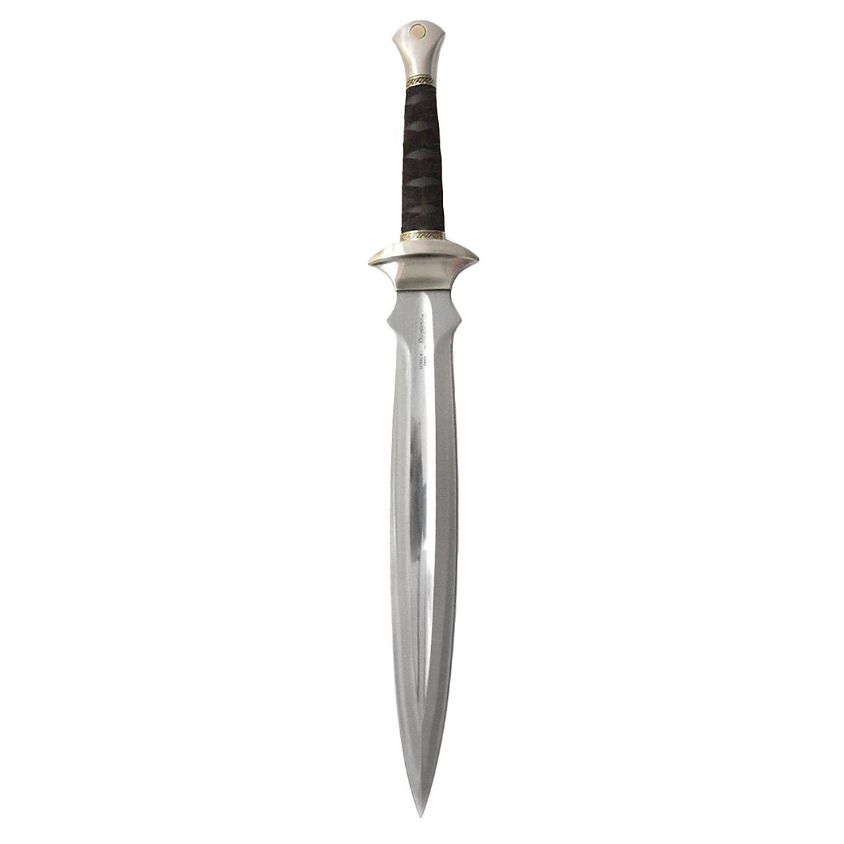 Samwise Gamgee, a hobbit from the Shire, was one of the most famous hobbits in Middle-earth because of his role in the destruction of the One Ring and because of his battle with the great spider Shelob. He began life as a simple gardener to the Baggins family and was a loyal friend to Frodo Baggins. Out of devotion to his master, Sam accompanied Frodo on his quest to destroy the One Ring. He was a reliable companion and possessed great endurance and resilience, which enabled him to protect Frodo during the journey. Sam was steadfast and tenacious during many dangers, including the crossing of the Spider Pass in the northern part of the Shadow Mountains. He resisted the lure of the One Ring all the way to Mount Doom until it was finally destroyed there. This authentically detailed sword is a reproduction of the prop used in the film "The Lord of the Rings™" - The Fellowship. United® Cutlery, the market leader in movie prop reproductions, has also carefully crafted this actual movie prop.